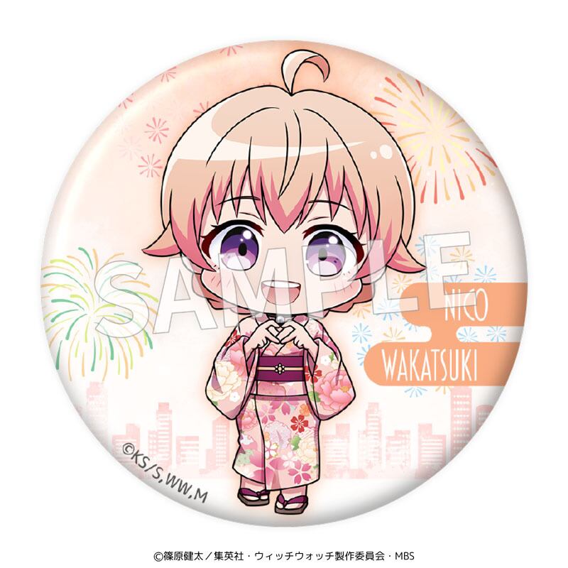 浴衣姿の描き起こしミニキャラが可愛い、直径57mmの缶バッジです。