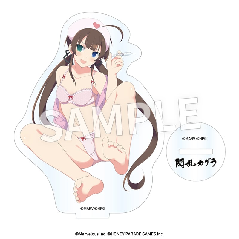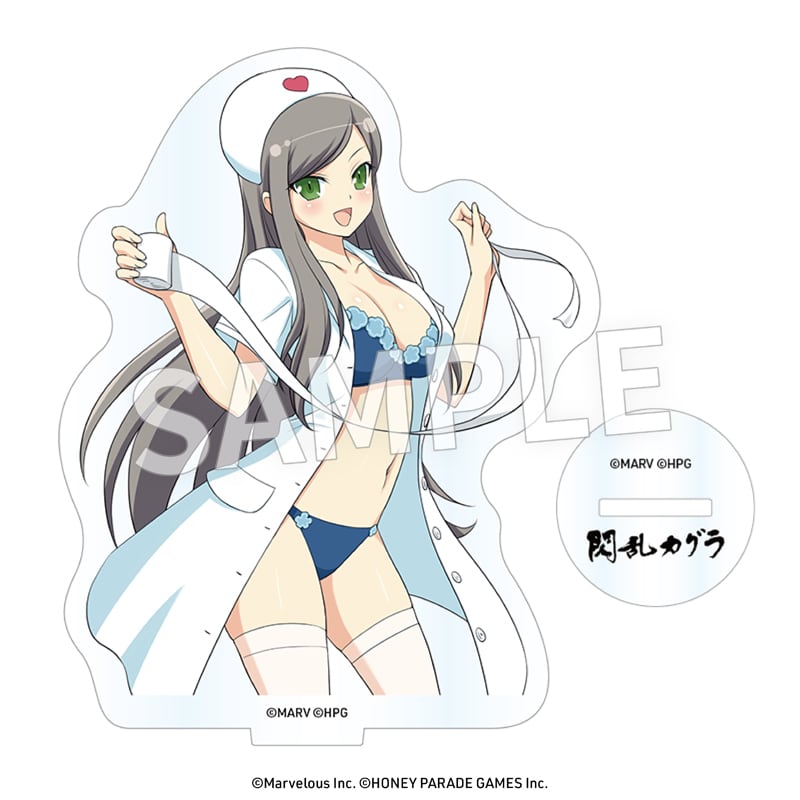 ナース姿のヒロインたちの立ち絵イラストを使用し、キャラクターのシルエットに沿ってダイカットした仕様です。